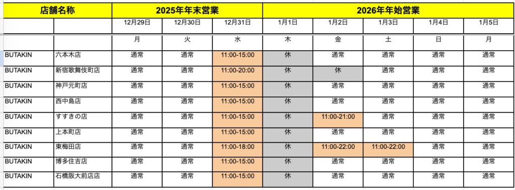 平素より格別のお引き立てを賜り、厚く御礼申し上げます。 年末年始につきまして、下記の通り営業時間を変更させて頂きます。何卒ご理解下さいますようお願い致します。これからも変わらぬご愛顧の程よろしくお願い申し上げます。 ※営業時間は各店舗の都合により変更になる場合がございます。